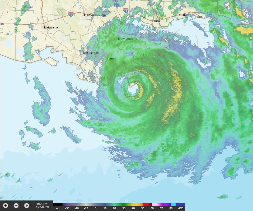 L'impact avec la Louisiane était prévu en soirée et nuit de dimanche 29 à lundi 30 août avec une marée de tempête dépassant les 3,5 à 4m, des rafales de vent pouvant dépasser les 250km/h et des cumuls de précipitations de plus de 500mm en 24h.