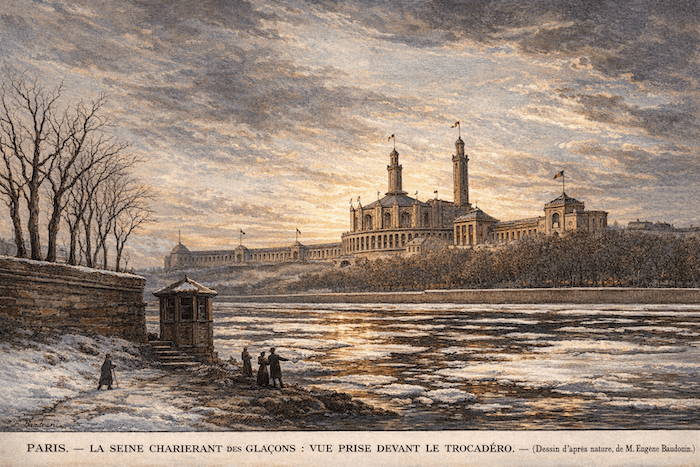 Dés la fin du mois de novembre 1890, les parisiens regardent la Seine charrier des glaçons... Archives meteo-paris.com