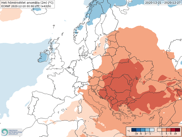 Mais alors, quelle est la tendance d'ici le 31 décembre ? Selon les prévisions du modèle Européen (CEP), nous venons d'entrer dans une période particulièrement douce sur l'ensemble de l'Europe, a minima jusqu'au début de la troisième décade (20 décembre). A l'approche de Noël ainsi que du réveillon du Nouvel An, cette tendance est plus incertaine, puisque aucune anomalie particulière ne semble ressortir au niveau hebdomadaire.