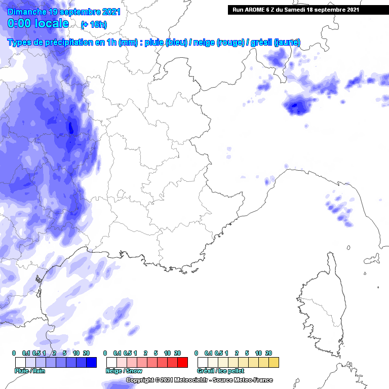 Animation des précipitations (pluie et neige) - journée du dimanche 19 septembre 2021 - Modèle Arome via Meteociel