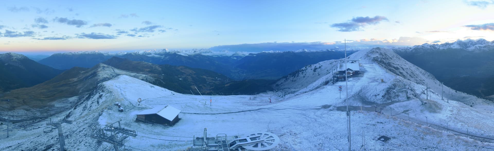 La plupart des massifs de Savoie, Haute-Savoie, Isère et Hautes-Alpes se sont parés un saupoudrage dès 2200m, et même d'une couche de plusieurs centimètre de neige fraîche au delà des 2500m.