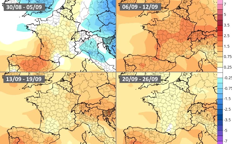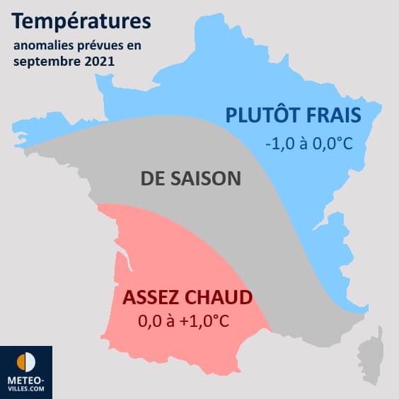 Estimation de l'anomalie thermique en France au mois de septembre 2021 - Météo Villes