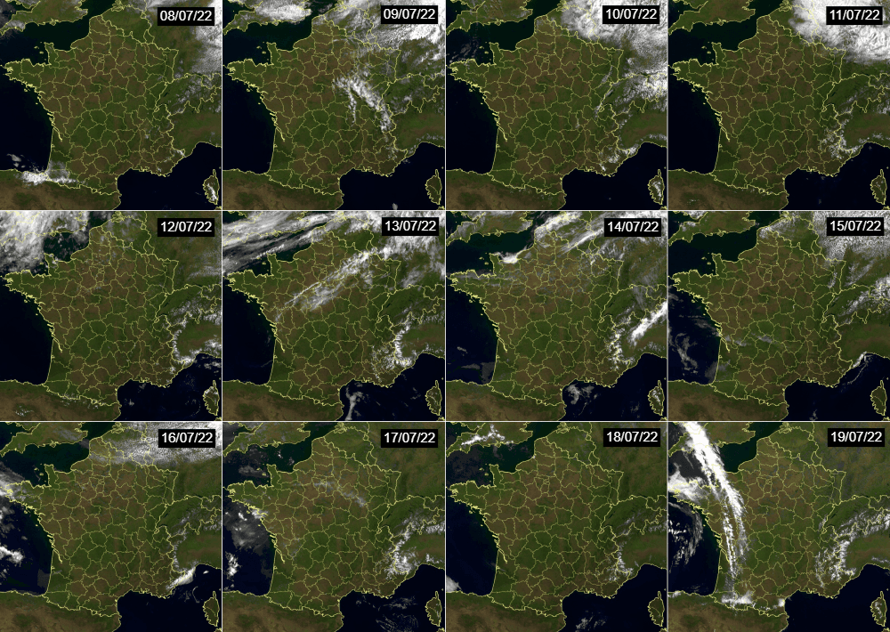Image satellite de la France du 8 au 19 juillet 2022 - EUMETSAT via meteociel.fr