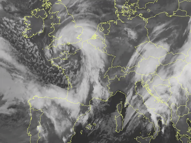 Image satellite de la tempête Gérard en matinée du lundi 16 janvier 2023 - via meteociel.fr