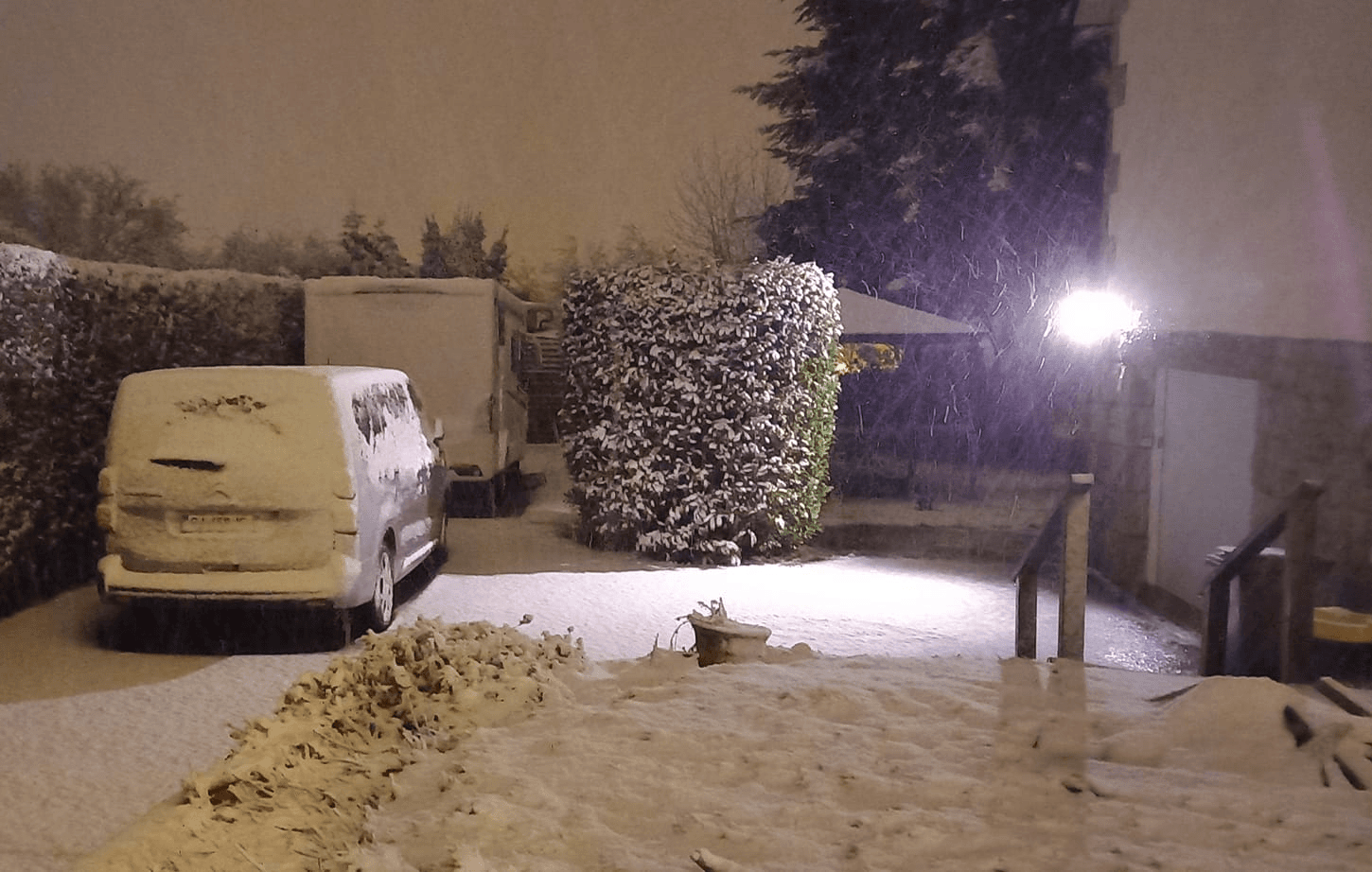 5 cm de neige à Collinée (Côtes-d'Armor) le matin du mercredi 18 janvier 2023 - photo Johan Rouquet