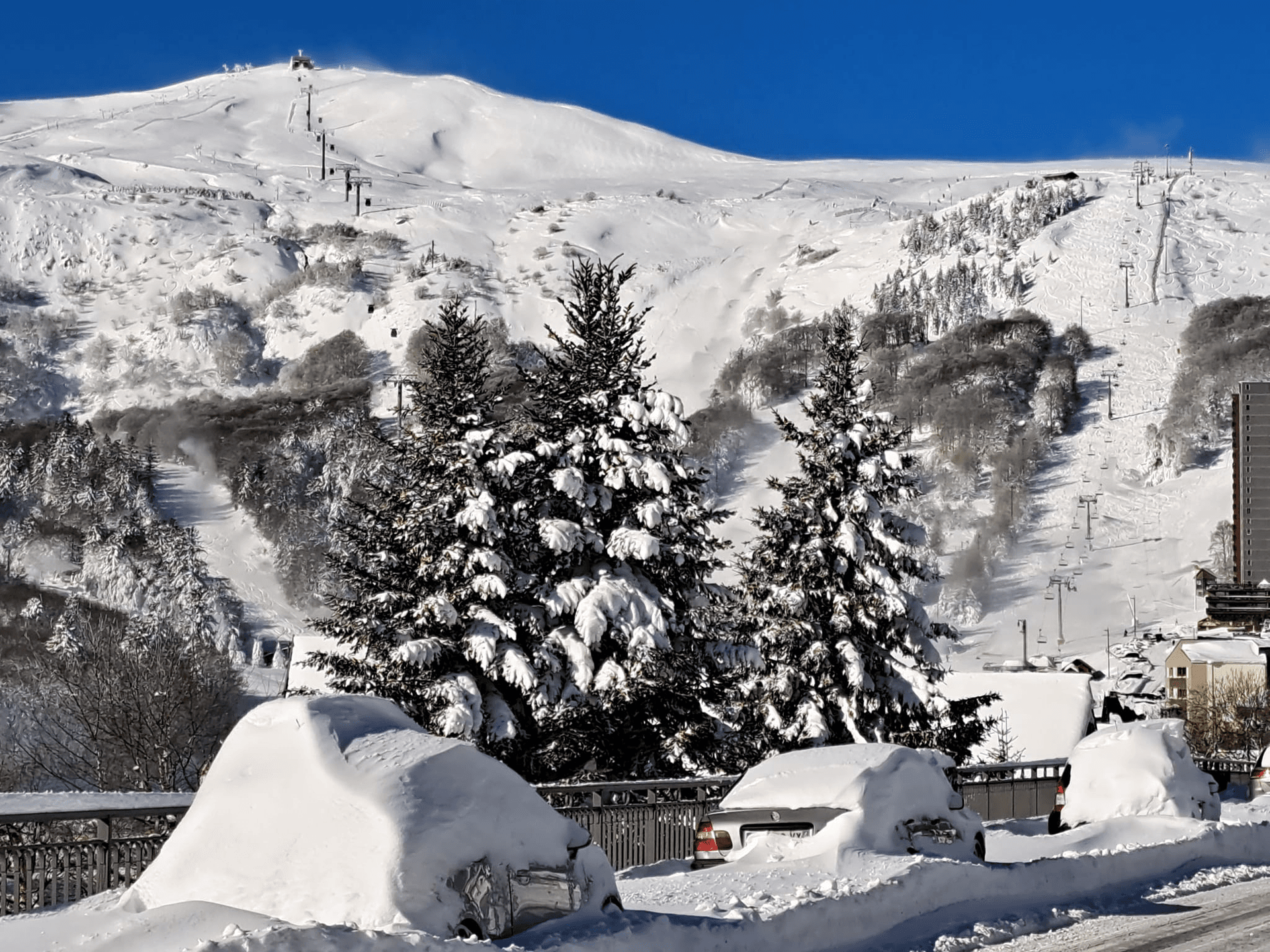 Comme les autres reliefs, le Massif Central a grandement bénéficié de la séquence froide et perturbée des derniers jours. Alors que les paysages étaient encore vierges de neige en matinée du dimanche 15 janvier 2023, ce sont plus de 50 centimètres de neige fraîche qui sont venus recouvrir les stations ces derniers jours ! Ci-dessous, la station de Super-Besse (63) a reçu près de 60 cm de poudreuse ! La nivôse de Chastreix est passée de 0 cm à 63 cm de neige en moins de 4 jours !