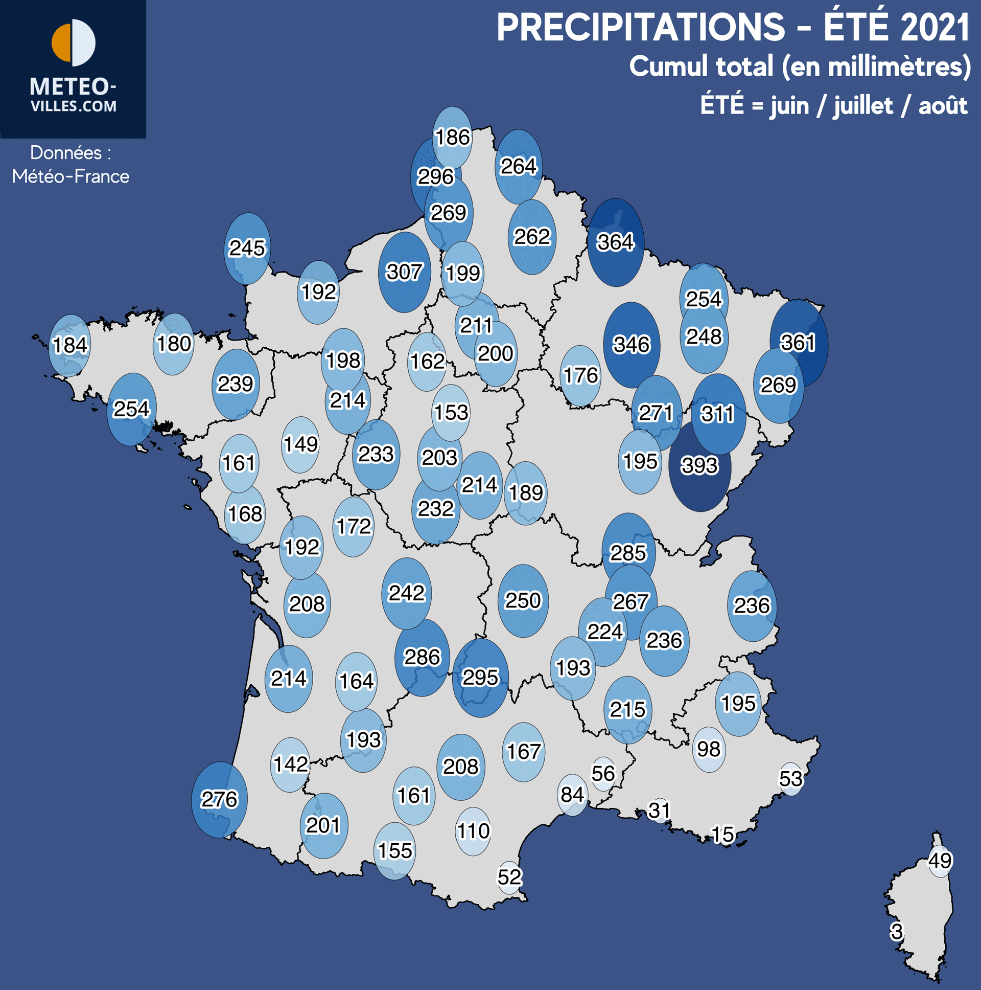 Récapitulatif pluviométrique des trois mois de l'été 2021