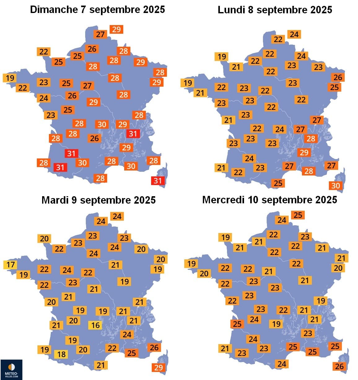 Évolution des températures sur la France du 7 au 10 septembre 2025 – Météo-Villes