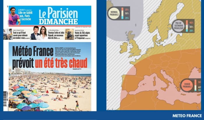 Comparaison entre la "Une" du Parisien et la tendance saisonnière de Météo France au printemps dernier