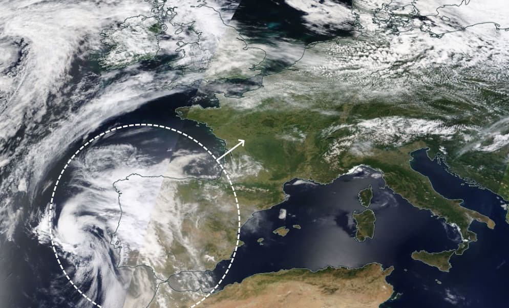 Il faut également souligner que ce "dôme de chaleur" va prochainement s'effondrer à cause d'une goutte froide actuellement située au large du Portugal. Avant qu'elle n'atteigne la France en apportant le retour d'un air océanique, elle contribue à accélérer le flux de sud entre le nord de l'Afrique, l'Espagne et l'hexagone. C'est ainsi qu'un nouveau soulèvement de poussières de sable en provenance du Sahara se produit sur nos régions.