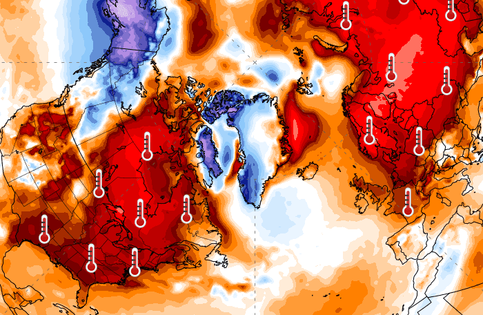 Dans un climat de plus en plus chaud, mêmes les régions habituellement froides et enneigées lors de la saison hivernale peuvent se retrouver avec des températures anormalement élevées et des sols plus verts que blancs. On constate que les anomalies chaudes n'ont plus de difficulté à se produire en même temps dans plusieurs zones du globe et que le principe de vases communicants entre Amérique du Nord et Europe est fortement mis à mal...