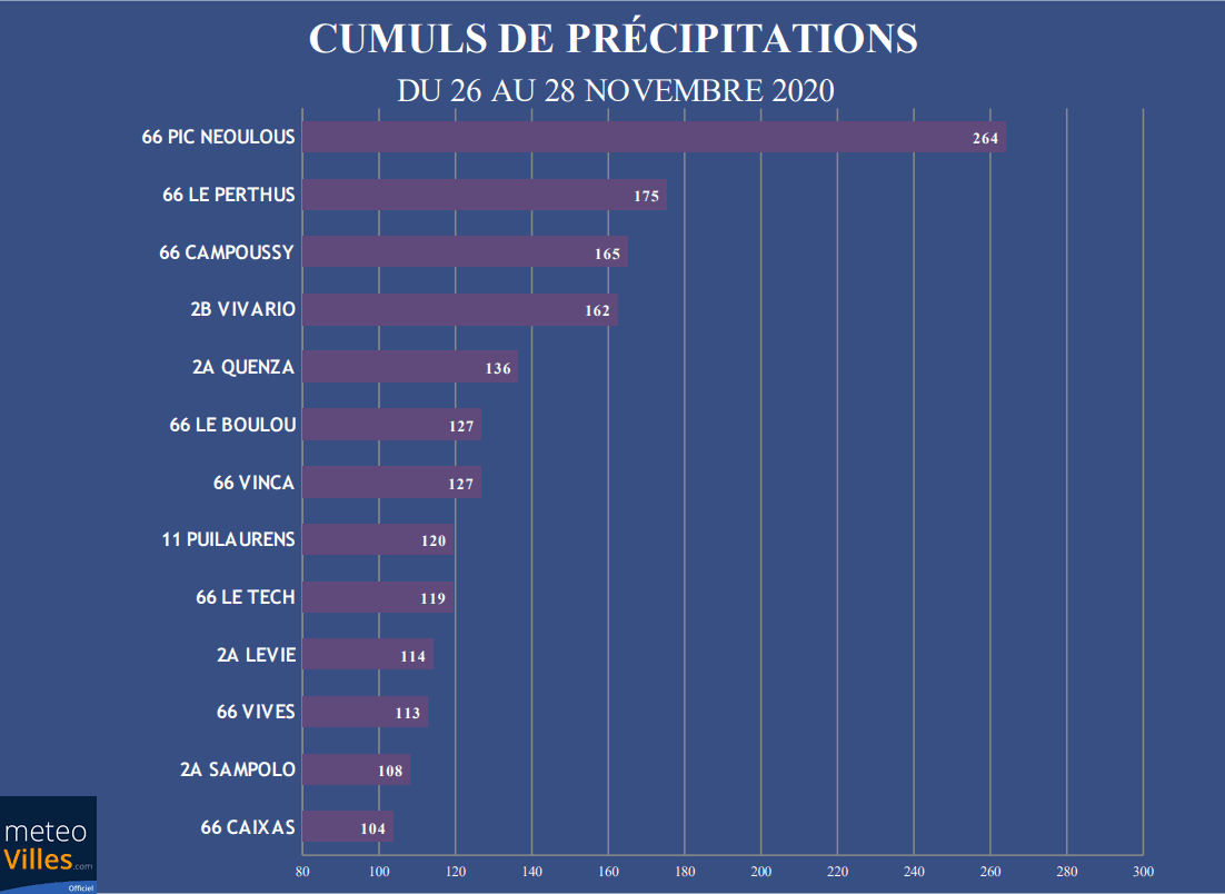 Classement des cumuls les plus importants relevés durant cet épisode en France - Météo-Villes