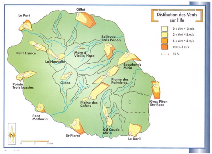 Distribution des vents par direction sur l'île de la Réunion - via Météo France / Météo Villes