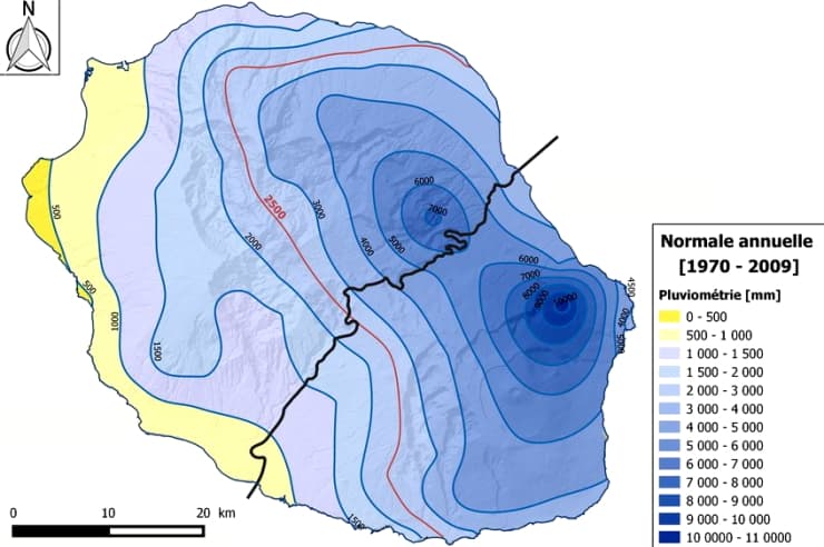 Moyenne annuelle du cumul de précipitations à la Réunion - via Météo France