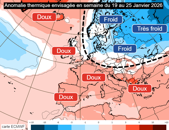Anomalie thermique envisagée en semaine du lundi 19 au dimanche 25 janvier 2026 - ECMWF
