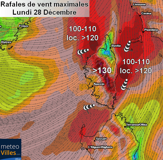 Dans le même temps les rafales vont également se renforcer sur la Corse, notamment près des reliefs et des secteurs exposés du littoral.