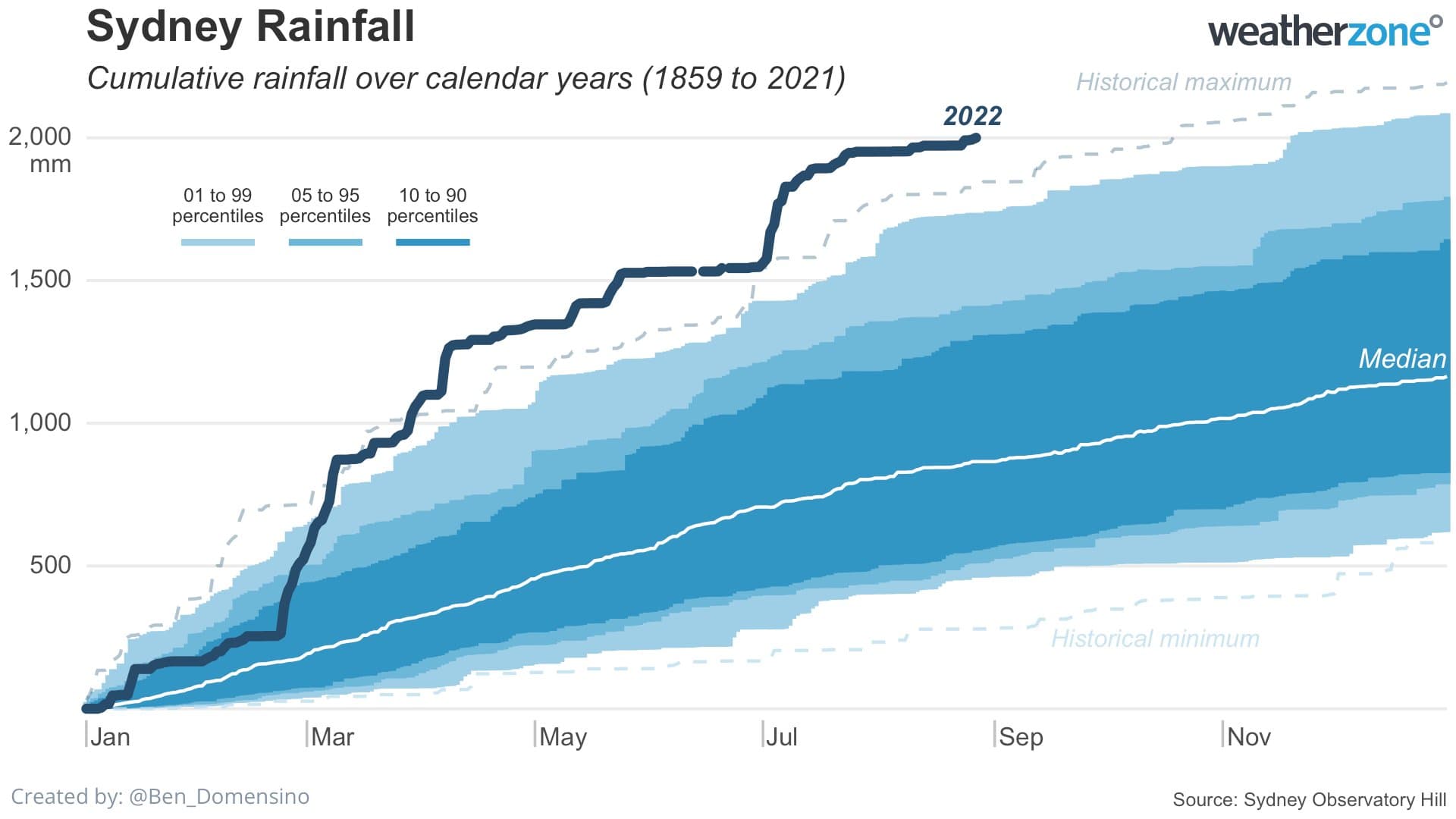 Cumuls de précipitations à Sydney depuis le 1er janvier 2022 – WeatherZone
