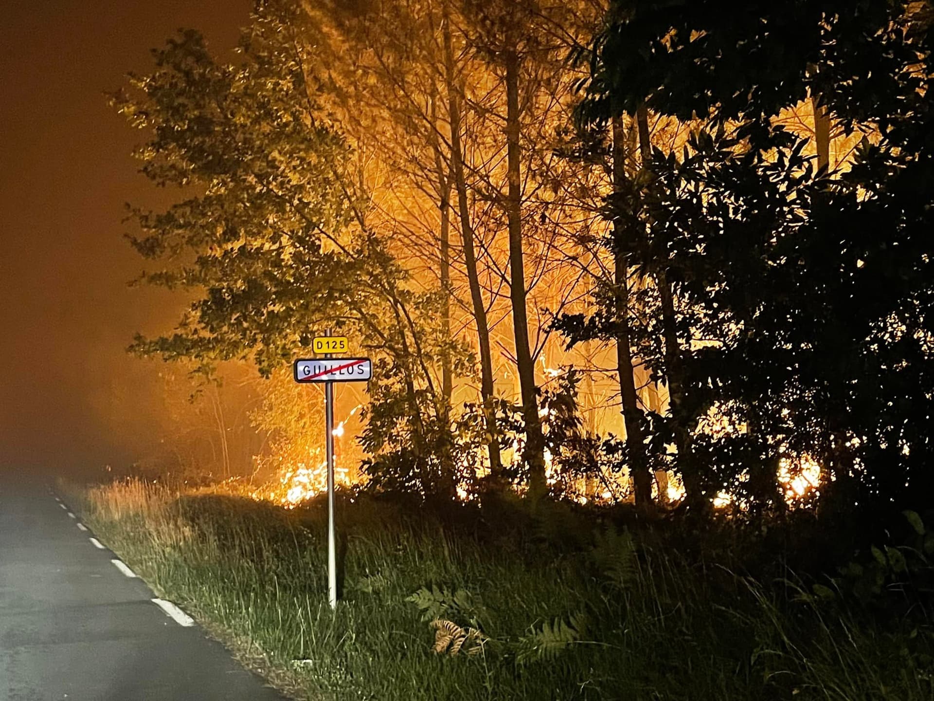 Les deux incendies ont été particulièrement actifs durant la nuit du mardi 12 au mercredi 13 juillet 2022, bien que celui évoluant entre les communes de Landiras et de Guillos est le plus étendu des deux. Les nombreux conifères qui peuplent la région sont malheureusement un excellent combustible et les quelques 600 pompiers engagés sur les incendies de Gironde éprouvent de grandes difficultés à maîtriser les flammes.