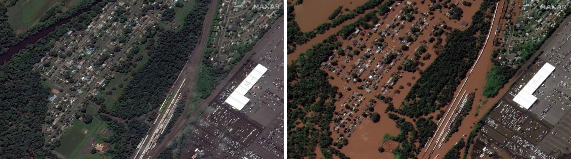 Comparaison de vues aériennes avant/après les inondations meurtrières des 1 et 2 septembre 2021 dans le New-Jersey - AFP