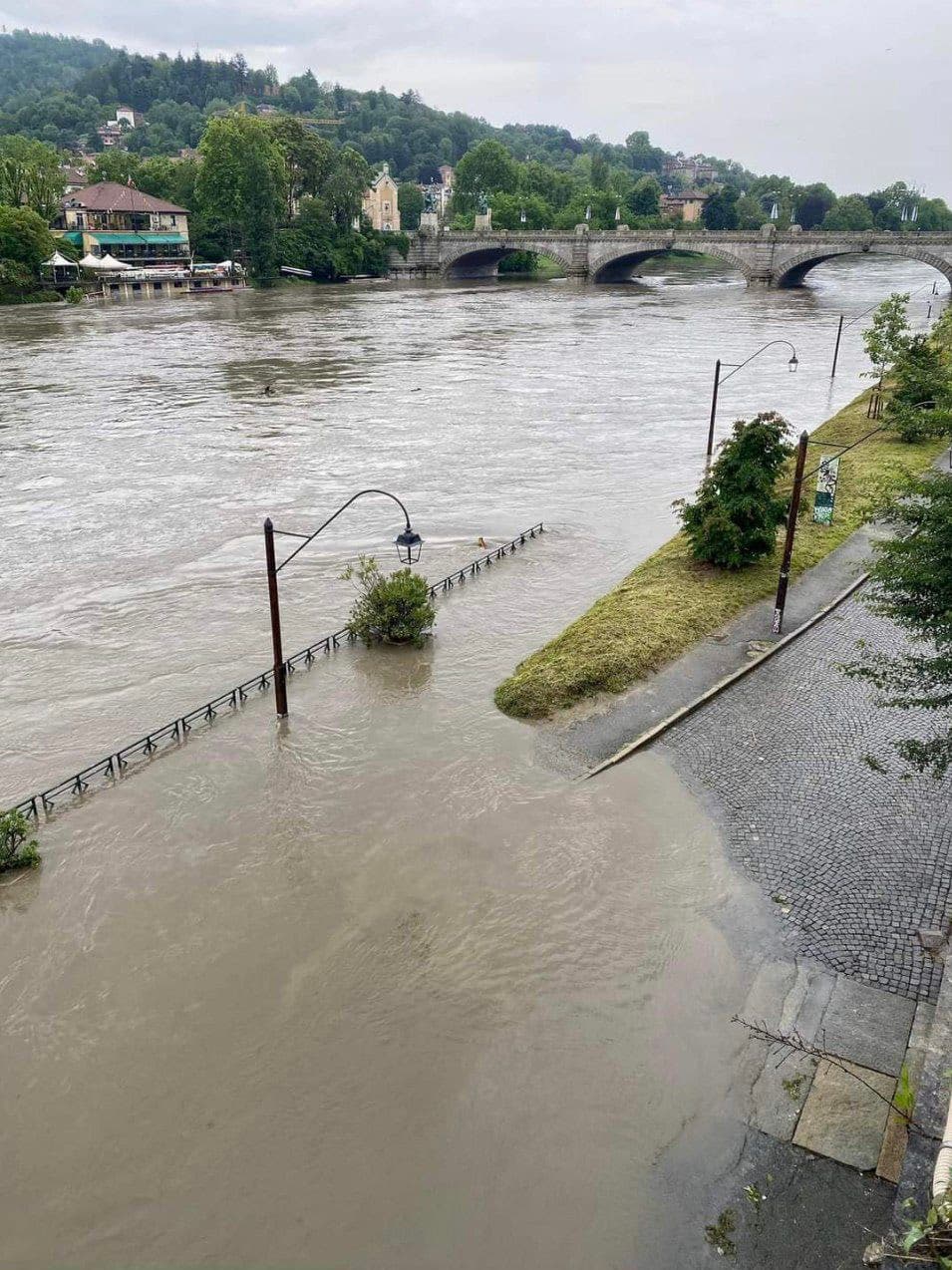 Le Pô en crue à Turin le 21 mai 2023 suite aux fortes pluies – Via Twitter @andreavuoloo