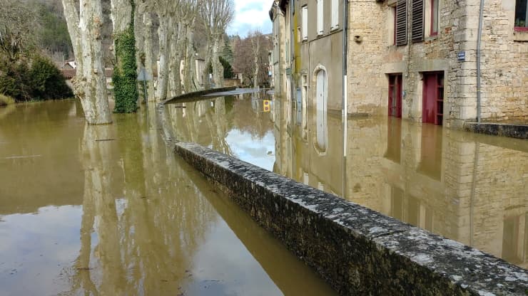 Crue de la Maronne à Terrasson le mardi 2 février 2021 - via Radio France - Philippe Graziani