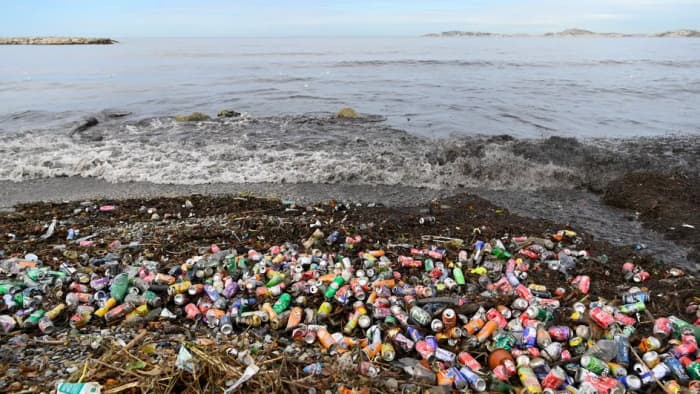 Déchets ayant ruisselé jusqu'à la mer à Marseille le 5 octobre 2021 - photo Nicolas Tucat / AFP