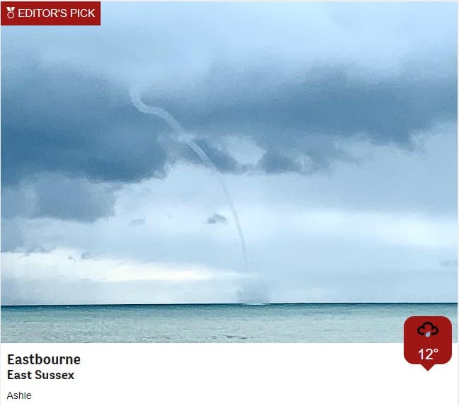Trombe marine au large d'Eastbourne ce 1er novembre 2021 – BBC Weather