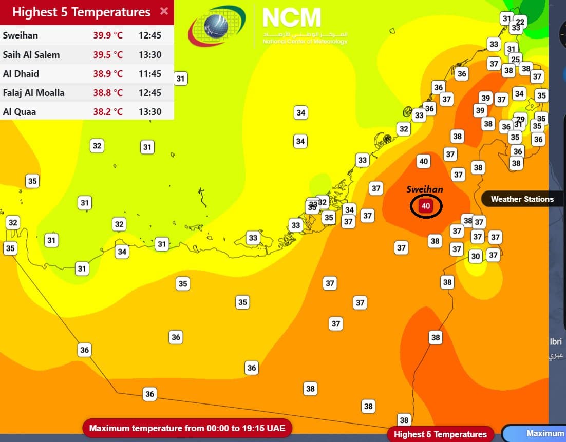 Le mois de novembre a débuté de manière brûlante sur les Émirats-Arabes-Unis. De nombreux records mensuels de chaleur ont été battus sur la région ce 1er novembre avec même un nouveau record national de chaleur pour novembre. Jusqu'à 39,9°C ont en effet été relevés à Sweihan, battant de plus d'un degré l'ancien record de 38,8°C à Al Jazeera en 2009.
