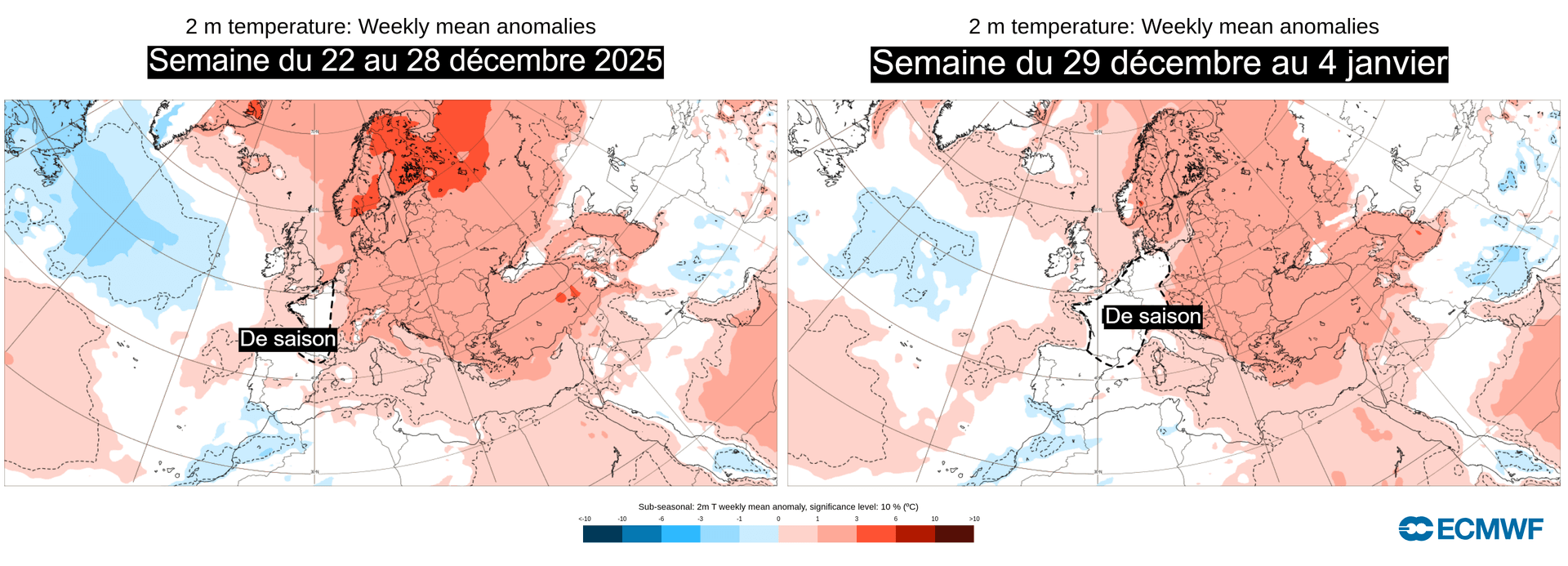 Anomalies de températures sur l'Europe pour la semaine du 8 au 14 décembre 2025 – ECMWF