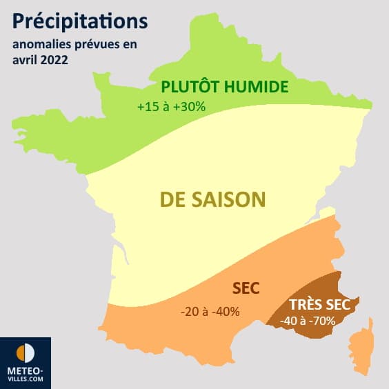 Projection de l'anomalie pluviométrique en France au mois d'avril 2022 - Météo Villes