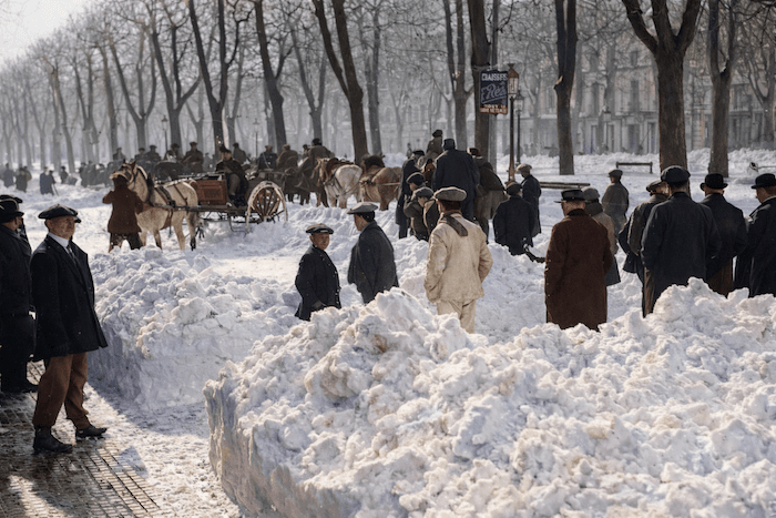 15 janvier 1914 : plus de 50 cm de neige recouvrent les rues de Béziers (Hérault) ! photo exclusive meteo-paris.com