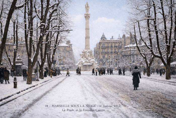 14 janvier 1914 : les rues de Marseille sont recouvertes d'un épais manteau blanc... carte postale exclusive meteo-paris.com