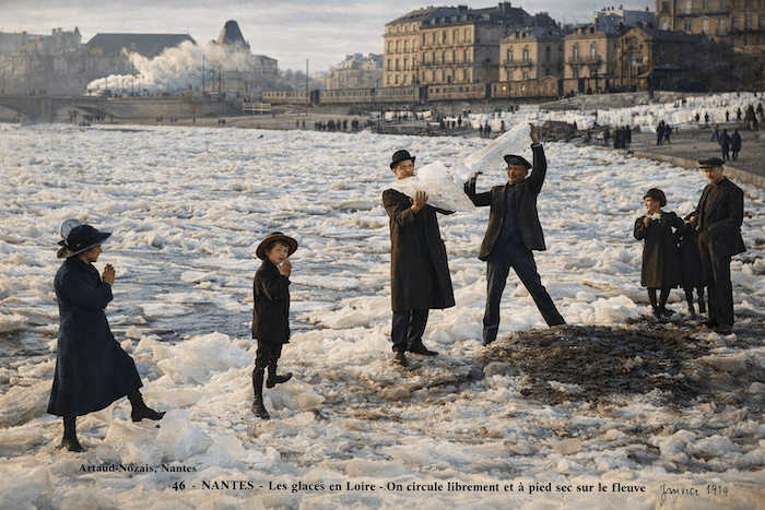 Janvier 1914 : la Loire gel à Nantes... carte postale exclusive meteo-paris.com