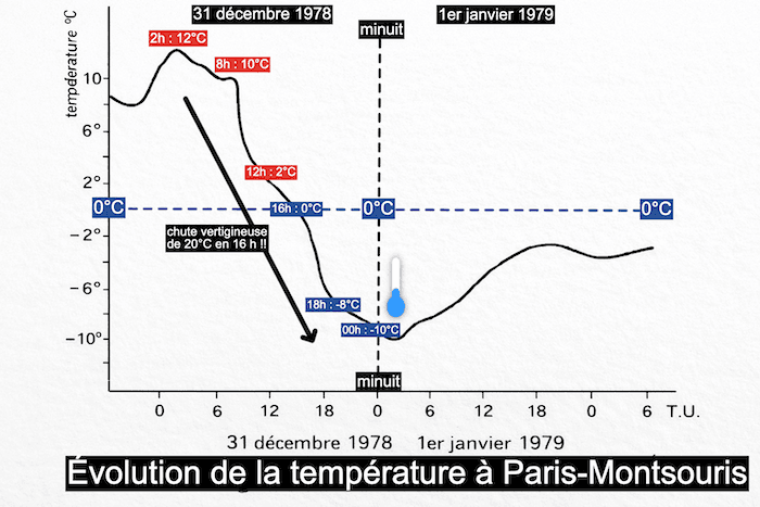 Évolution de la température à Paris entre le 31 décembre 1978 et le 1er janvier 1979 - meteo-paris.com