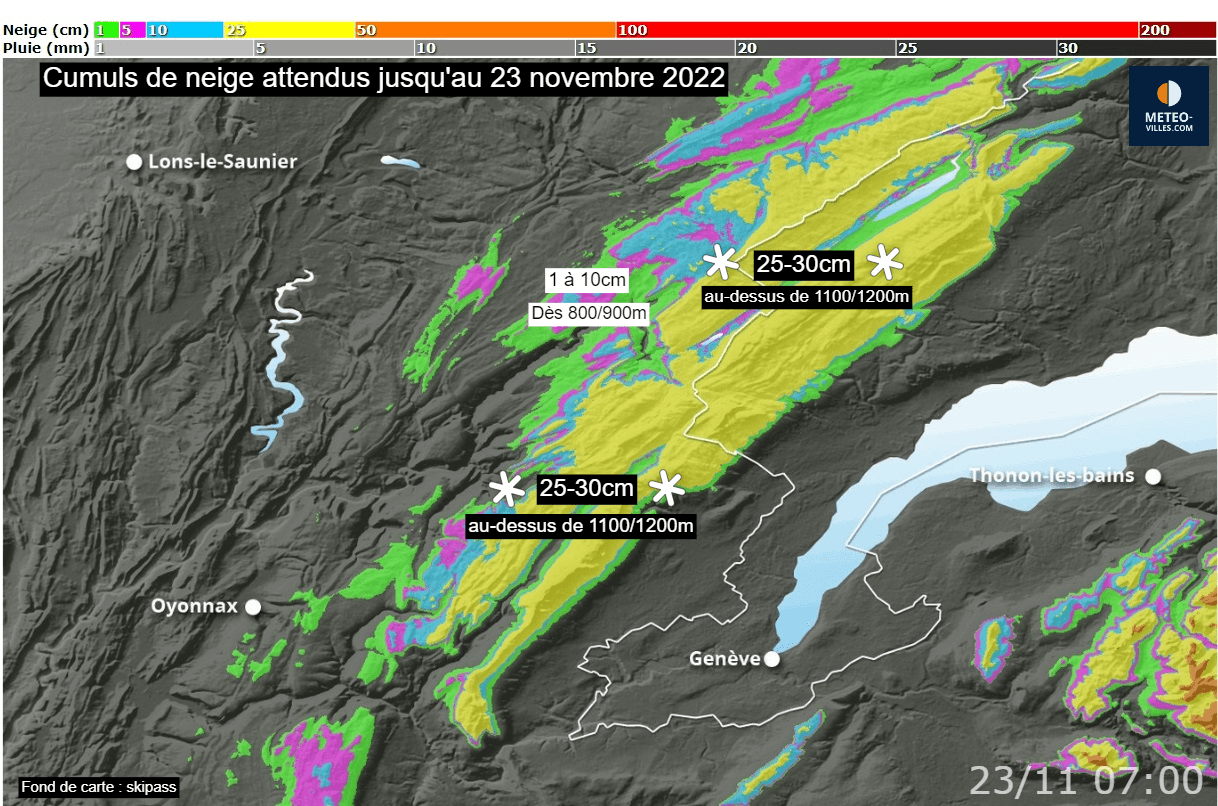 Cumuls de neige attendus jusqu'au mercredi 23 novembre sur le Jura – skipass
