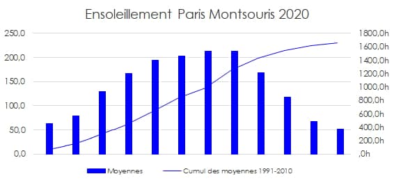 Nombre moyen d'heures de soleil par mois à Paris - via infoclimat.fr
