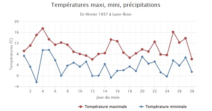 Températures minimales & maximales à Lyon-Bron en février 1937 - via infoclimat.fr