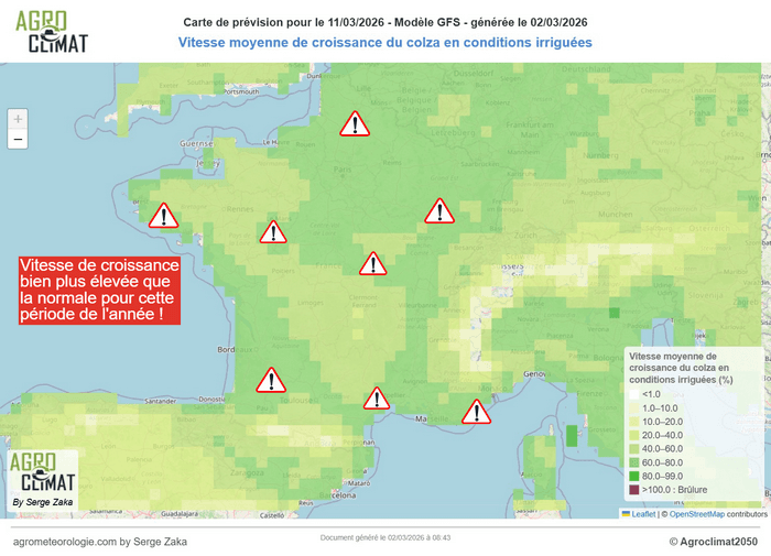 Vitesse de croissance du colza envisagée pour le 11 mars – Via agrometeorologie.fr