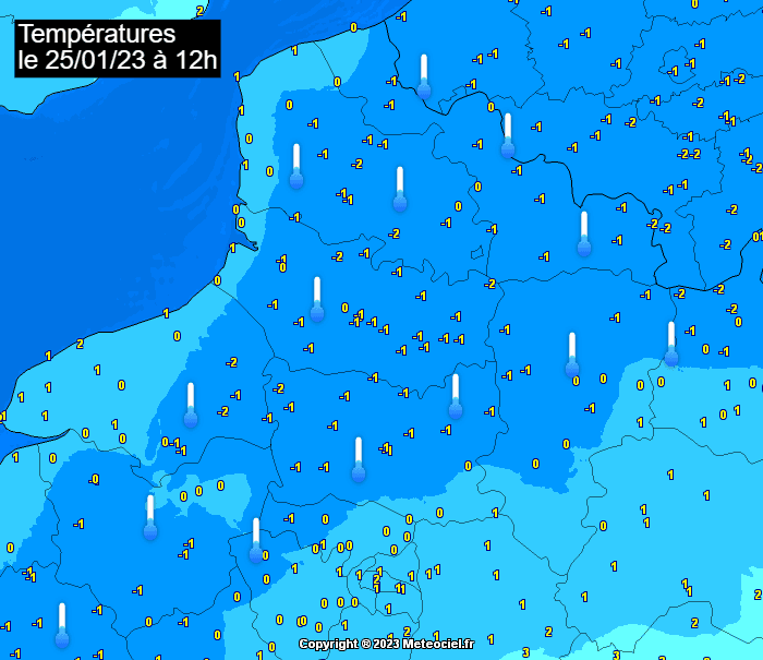 Températures mesurées dans le nord de la France le mercredi 25 janvier 2022 à 12h - via meteociel.fr