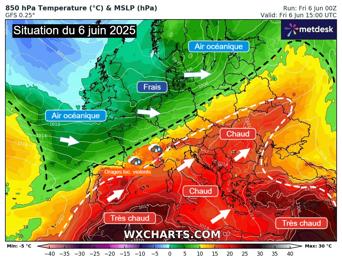 Situation atmosphérique du 6 juin 2025 – Modèle GFS via WX CHARTS