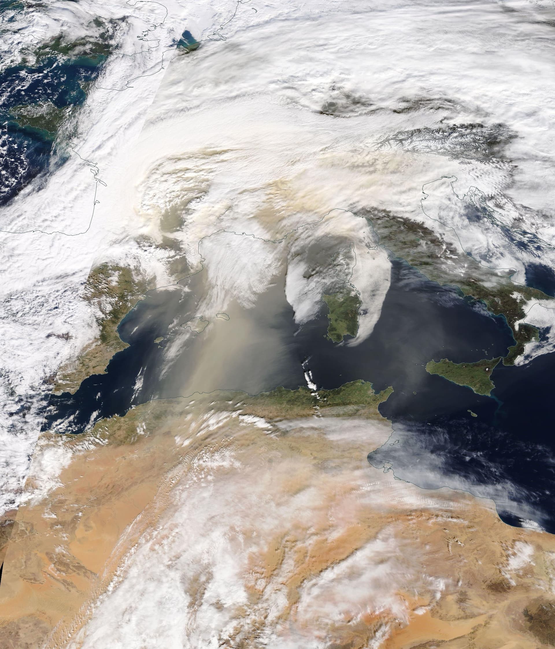 Remontée de sable Saharien vers l'Europe - 21 février 2004 - satellite Terra / NASA