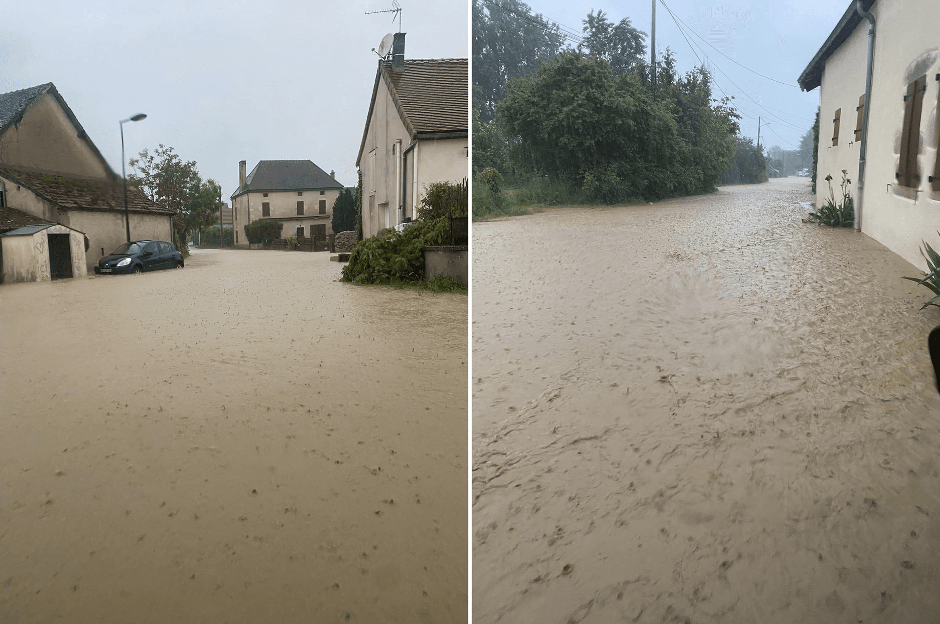 Inondations suite à un orage diluvien à Étroussat dans l'Allier le lundi 22 mai 2023 - photos Mairie d'Etroussat
