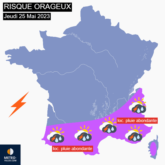 Carte du risque orageux pour ce jeudi 25 mai 2023 - Météo Villes