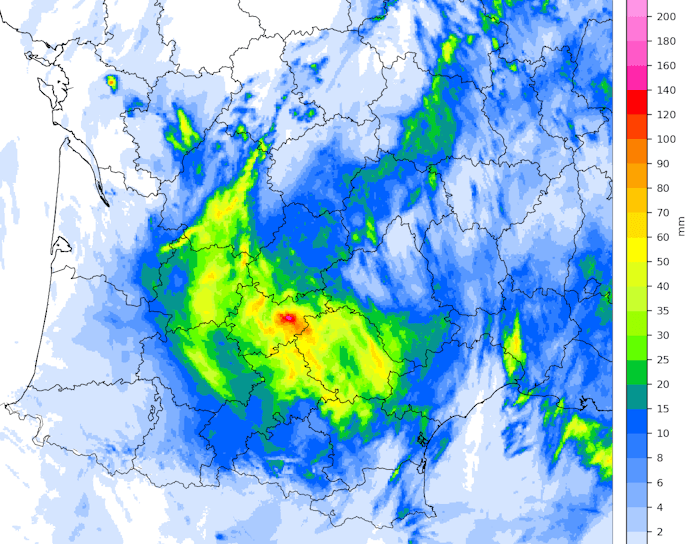 Cumuls de pluie au sud-ouest le lundi 19 mai 2025 et la nuit suivante - via keraunos.org