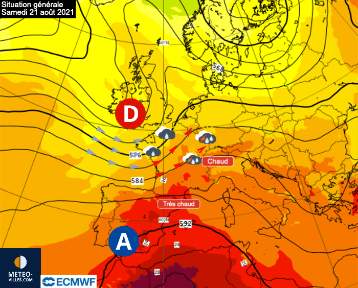 Situation générale au samedi 21 août 2021 - ECMWF retravaillé par Météo-Villes