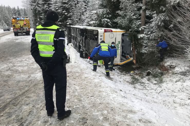 Accident d'un car scolaire à Labergement Sainte-Marie (Doubs) ce 1er décembre 2020 - via France TV