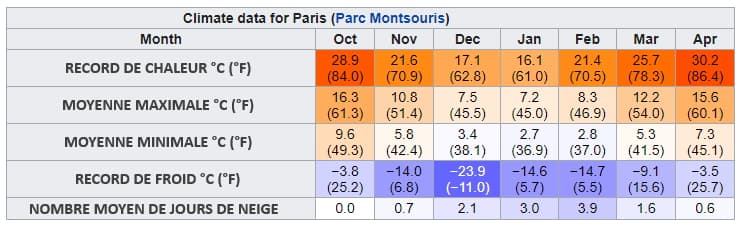 Tableau climatique d'octobre à avril à Paris (France) - Wikipédia