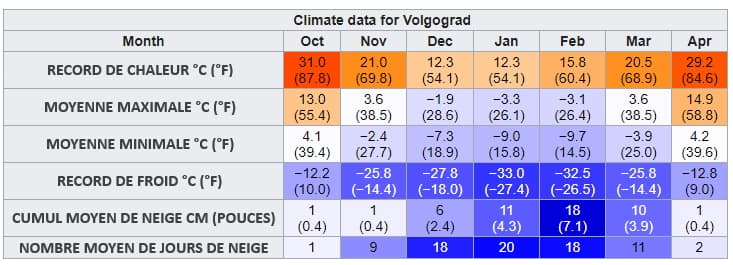 Tableau climatique d'octobre à avril à Volgograd (Russie) - Wikipédia