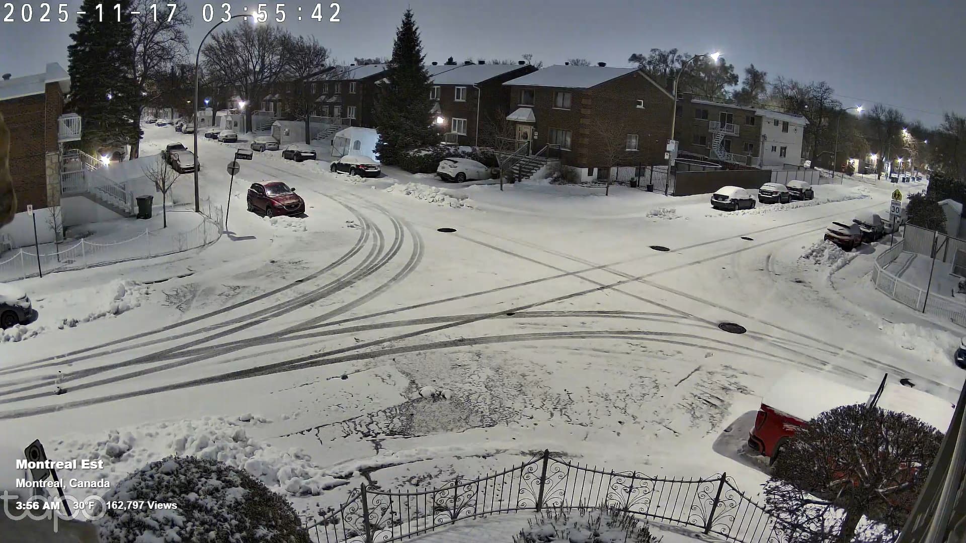 Couche de neige au sol en ce 17 novembre 2025 à Montréal – EarthCam