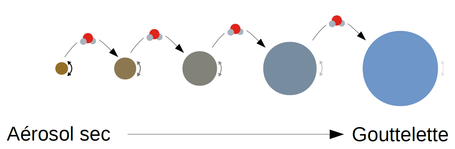 Schéma de formation d'une gouttelette d'eau à partir d'un aérosol solide - © Benoit Vié